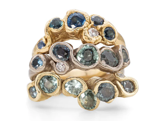 در سواحل غربی انگلیس، او جواهراتی میآفریند که گویی در خود نشانی از امواج و شنهای دریا دارند. او در استودیوی خود در نزدیکی «هیل» با فشردن موم بر جلبکها، سنگها و صخرههای یافتشده در خلیج «Mount’s Bay» شروع میکند و سپس این بافتها را با روش ریختهگری موم گمشده به فلزات بازیافتی طلا یا نقره منتقل میکند. پیشینه او در نساجی و کیوریتوری نمایشگاه، و فعالیت در «Newlyn Art Gallery»، باعث شد نگاه هنری متفاوتی به جواهرات پیدا کند. برند شخصی او که از اوایل دهه ۲۰۰۰ شکل گرفت، امروز به یک کسبوکار مستقل موفق بدل شده و به زودی با افتتاح یک استودیو و کافه جدید در ساختمانی بازسازیشده در پِنزانس، فضای اجتماعی تازهای برای تجربه جواهرات فراهم خواهد کرد. استفاده از فلزات بازیافتی، یاقوتهای کبود با رنگهای اقیانوسی و الماس همزمان نشانگر تعهد اخلاقی و شهود زیباییشناختی اوست. امسال، خط تولید مردانهای شامل حلقهها و انگشترهای مهر معرفی کرد که بهگونهای طراحی شدهاند که حس کشف شدن پس از سالها در شن و خاک را القا کنند؛ طرحی که با مشارکت پسرش شکل گرفت و اکنون خود او و دوستانش نیز از این جواهرات استفاده میکنند.